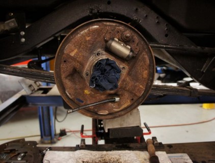 Robert's 61 with the rear axle shaft removed ready for new wheel bearings to go in.