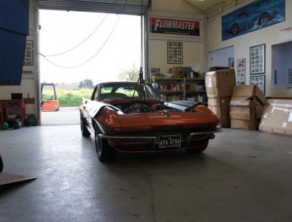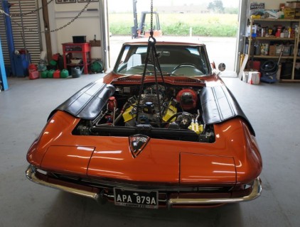 About to haul the engine from Julia's 63. The cam in this car is too radical to make any vacuum, so theres no power brakes, as we are swapping the 4 speed manual to a 4 speed auto trans it is easier to pull the motor to swap the cam, and deal with all the other niggles at the same time.