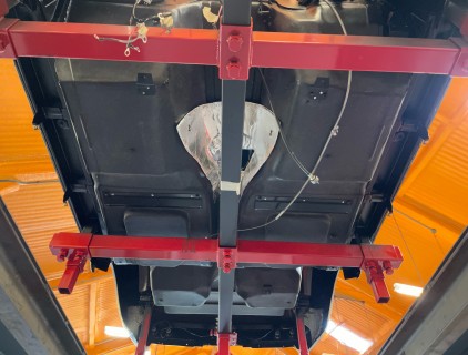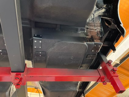 After many hours of cleaning off old underseal the floor pan of my 66 is looking like it should. The splash shield and seat and seat belt brackets have all been reattached using the correct aluminium body rivets. You wont believe how time consuming this is...