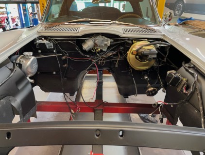 The engine bay on my 66 coming together with rebuilt wiper and headlight motors, new brake booster and rebuilt master cylinder. Along with new writing looms, aluminium radiator and more, more, more.