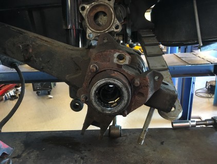 the bearings on this car have obviously been replaced as the seal looks recent, but the arm has never been apart and the reason the new bearing has failed because it wasn’t shimmed correctly, you can see the needle rollers laying in the bottom off the housing.