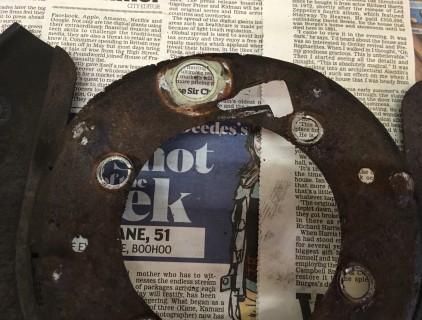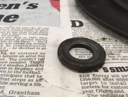 You can see how hard the previous did the nut up to try and get rid of the play in the wheel bearing, it is dished in like hell, and thats a 1/4” thick! The bearings are shimmed though and tightening the nut makes no difference.