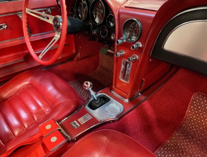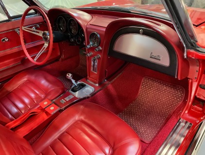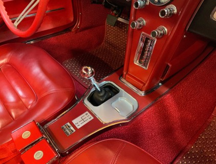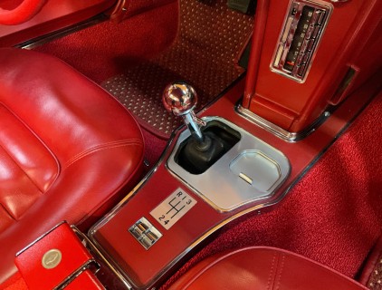 Chris' 66 with new carpets installed, we also refurbished the shift console and fitted a reproduction radio with bluetooth.
