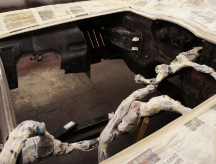 Here also the engine bay has been cleaned and prepped and is getting a fresh coat of satin black.