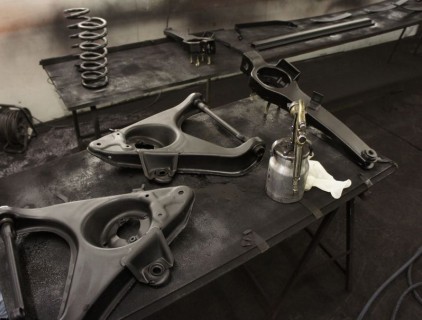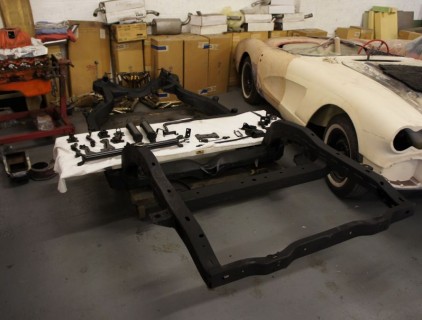 You might remember this one from the nationals, here Martin's 67 has had the chassis stripped, everything sandblasted and rebushed. All the smaller parts are topcoated now, chassis repairs next.