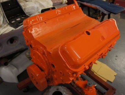Martins engine prepped and painted, we had the inlet blasted with baking soda to clean the aluminium and make it look like new. Looks awesome.