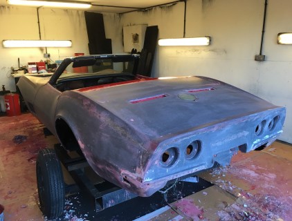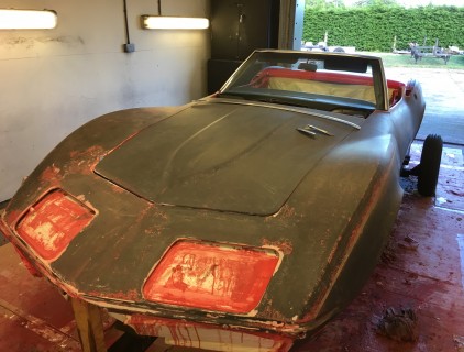 And there she is! Still the front valence and decklid to do but nearly there. This really was a tough one, there was a coat of filler primer that was very stubborn, and we have uncovered a few previous repairs that will need dealing with. Nothing that is insurmountable though.