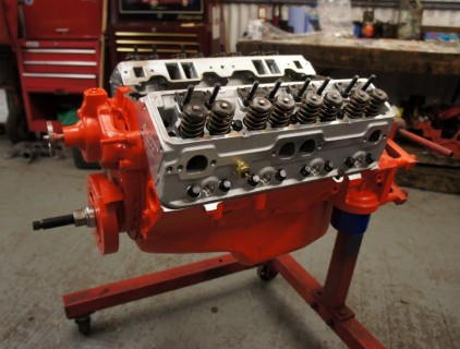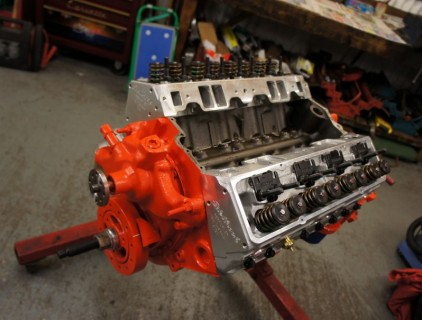David's engine starting to go back together. Here the new aluminium heads are installed.