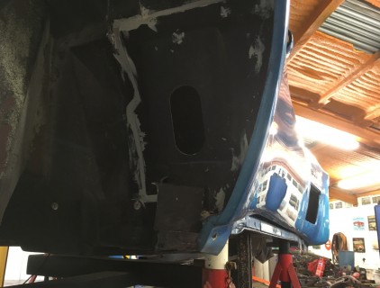Beans 70 coupe with the body mount repairs just about at an end and looking good.