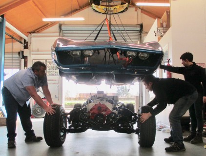 Brians 70 in the process of getting the body refitted. This car will be a blast with its aluminium head setup, along with Steeroids, Smart Struts and 700R4 4 speed auto....