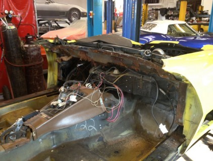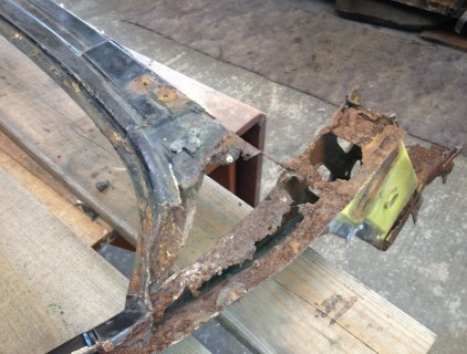 Richard's 71 undergoing some major surgery. The windscreen frame and birdcage was completely rotted out on this one, we imported a donor vehicle and have cut out the entire windscreen frame and birdcage are from both vehicles. We have replaced the 71's complete structure.