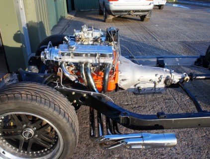 Rob's 72 after the replacement chassis has been built up, along with a set of steeroids and smart struts, billet aluminium pulleys, and all that good stuff.