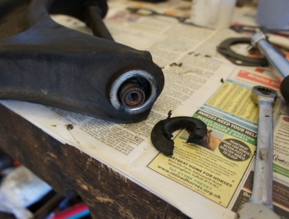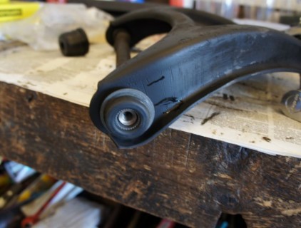We redid the injection setup and it purrs like a kitten now, here you can see the poor wiring connections, worn out A-Arm bush next to our replacement, and the mickey mouse transmission crossmember next to a proper purpose made item.