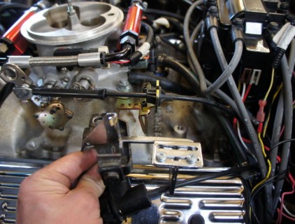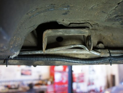 Darrells 72 again, we have replaced the mickey mouse throttle body/TV cable setup with a much nicer, and more correctly operating system, having removed the old crossmember we found the fuel lines had been crushed almost closed, a nice thing to leave when you are fitting a fuel injection setup....