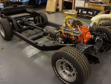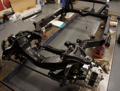 Dave's chassis complete with steeroids and smart struts, all freshly rebuilt and ready for the body - almost seems a shame to cover it up!