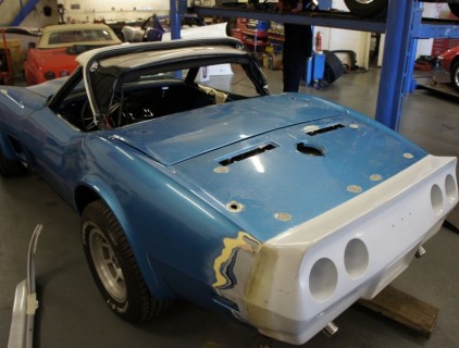 Dave's car ready for the painter, new front and rear bumpers have been fitted and this ones ready to go for prep.