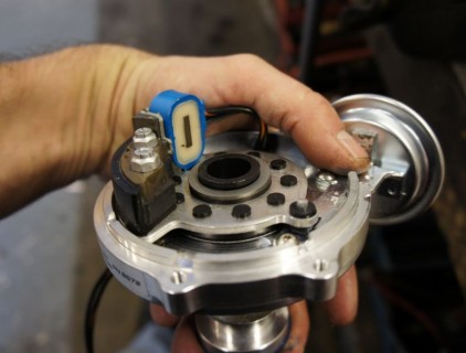 Ralphs 74 almost ready for road test. the new aluminium radiator is in place, along with aluminium heads etc etc. Foiled at the last minute by an MSD distributor. A siezed tach drive gear getting remedied here. Even the new stuff goes wrong sometimes.