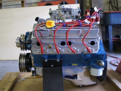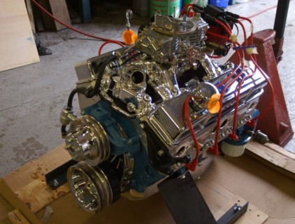 Terry's new engine about to get lifted into place, this 430hp monster linked to a 700R4 4 speed auto should make this a missile.