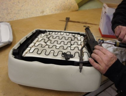 Wayne brought his seats in to be recovered, we have sandblasted and painted the frames, new foam, and new covers installed. Not only do these look fabulous but ar more comfortable to boot.