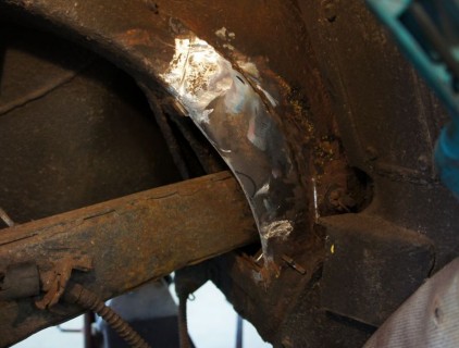Tim's 78 getting the dreaded rust removed from the trailing arm pockets, a pretty common on this, and as this one was caught in time, no problem to sort.