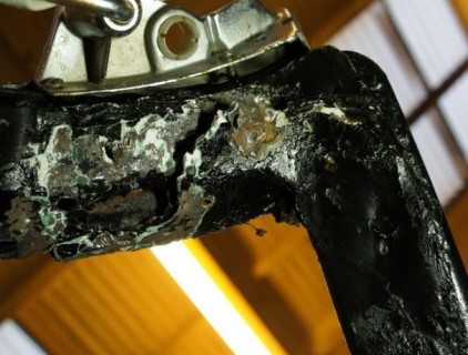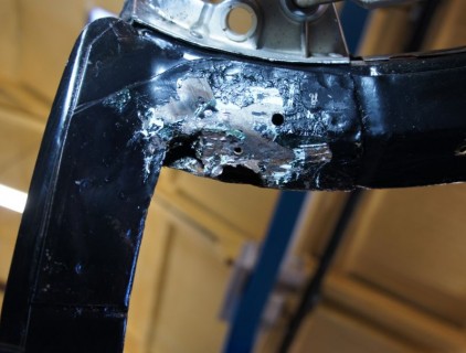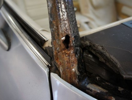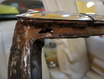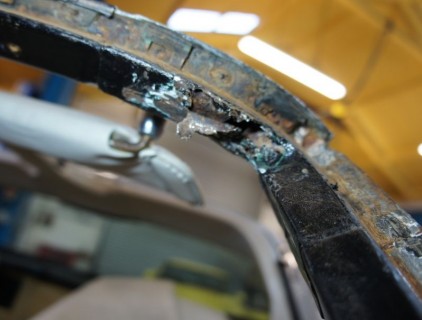 Duncan's Silver Anniversary coupe had the windshield removed today to find the all too common windscreen frame problems. Not to be left out the loop, Charlie stuck his oar in also....