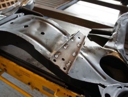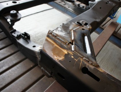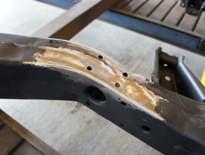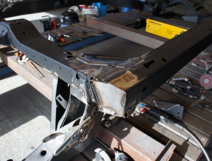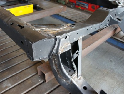 Here the trailing arm pockets are being finished and the chassis end rails are being replaced.