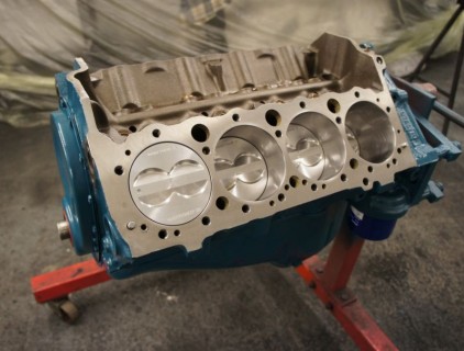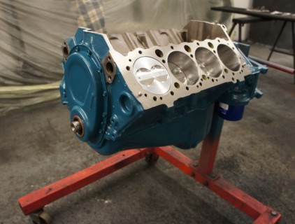 John's 78 engine freshly rebuilt and afte a coat of Chevy blue, looks good!