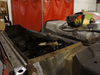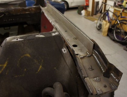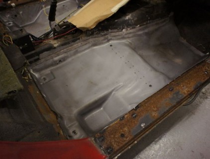 Richard's 80 really had seen better days but is well on the way to a new life. Here the floor pans are being replaced, and the body mount runners are geting reinforced with repair sections.