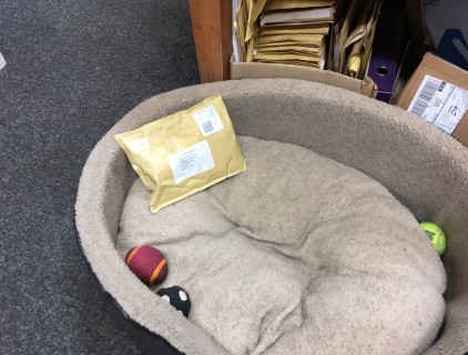 Charlie has a nice surprise waiting for him when he gets to work tomorrow. This special delivery arrived for him today so here it is waiting for him in his basket.