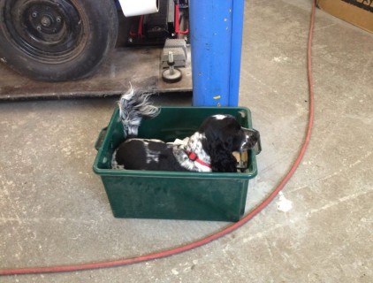 My lovely Charlie had made himself a nest in our paper box! He was trying to hide his chew so we couldn't get it, there are chews hidden everywhere in our workshop - he's a bugger!