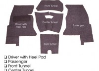 Carpet sets are available in the correct material as original and the fit is exactly as it should be, dimmer switch grommet included, heel pads are installed for the driver.