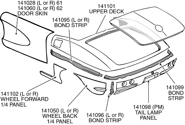 C1 - 1953-1962 » Body, Frame, Fiberglass, Bumpers & Hood » Fiberglass: Doors, Rear Panels & Bond Strips