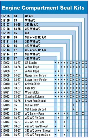 C3 - 1968-1982 » Engine, Engine Compartment & Performance » Engine Compartment Seals, Grommets & Kits